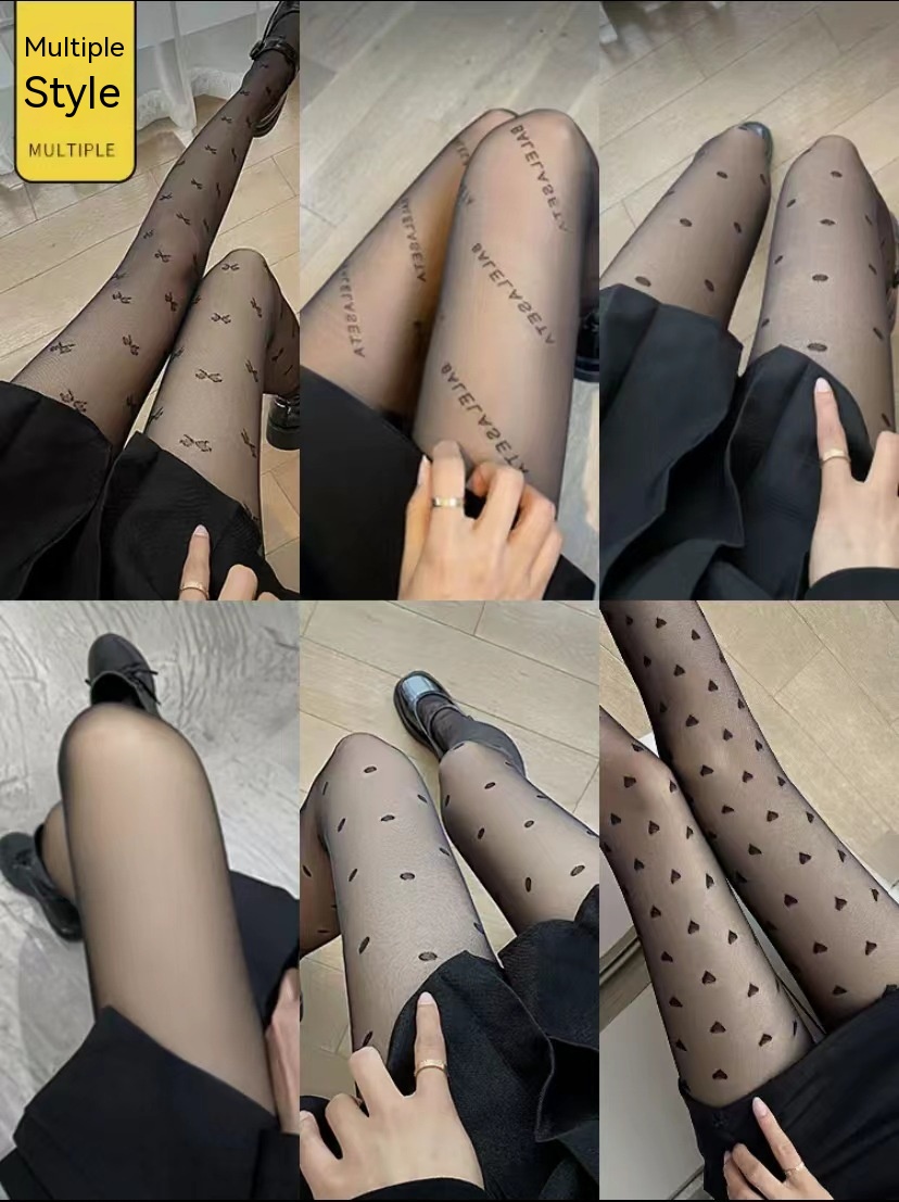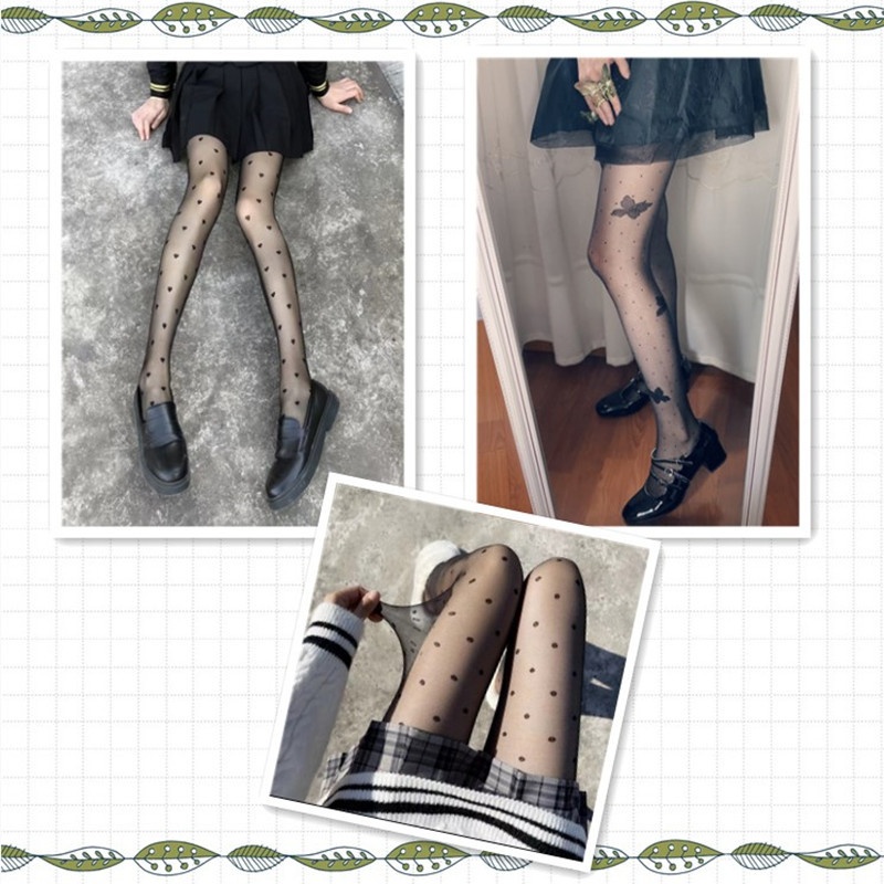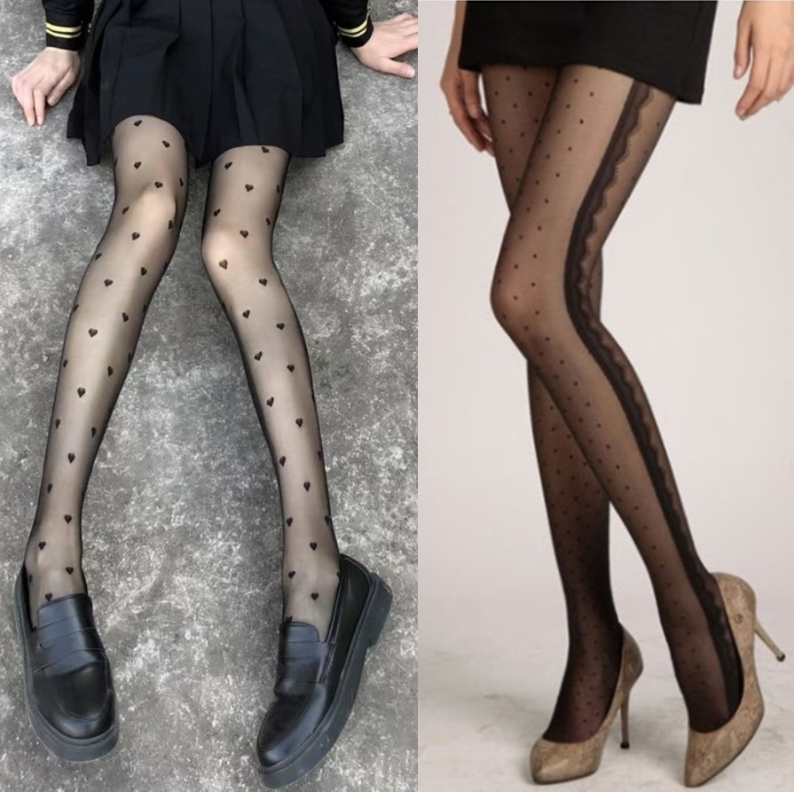 Spring And Summer Ultra-thin Black Stockings Pantyhose, Feminine Polka-dot Heart-wrap Silk Jacquard Pattern Stockings, Butterfly Black Pantyhose