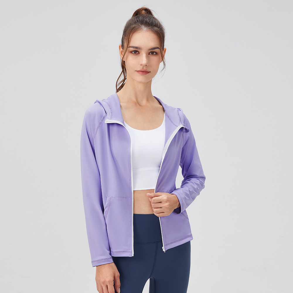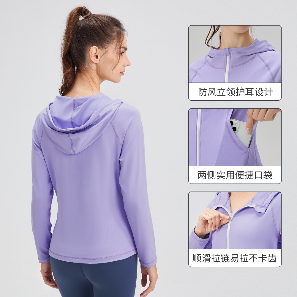 Women's Autumn And Winter Yoga Wear Hooded Slim Fit Fitness Clothes Zippered Quick- Drying Running Sports Jacket32624