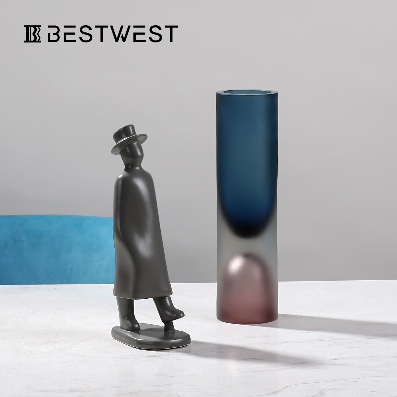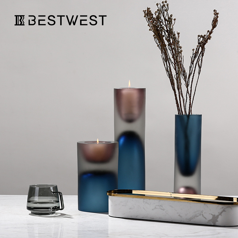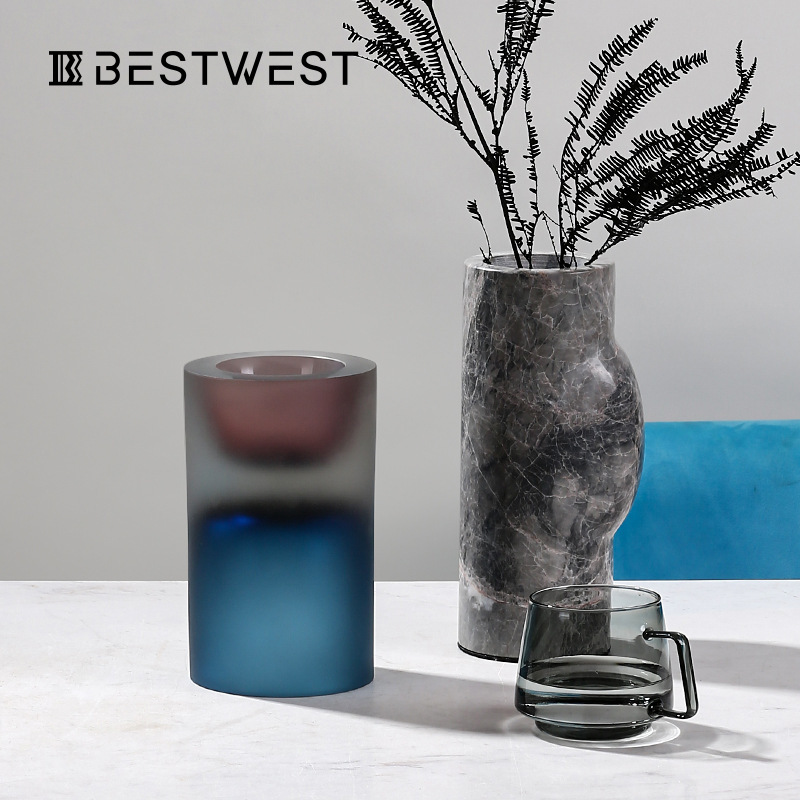 Best West Light Luxury Frosted Glass Vase Flower Vessel Aromatherapy Utensils Ornaments High-end Model Room Soft Decorations