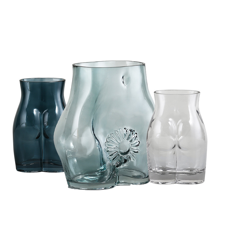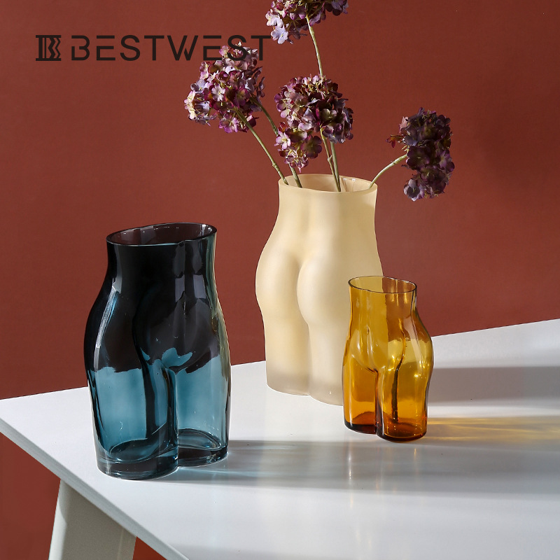 Best West Human Butt Glass Vase Ornaments Nordic Home Soft Decoration Light Luxury Decoration Flower Vessel