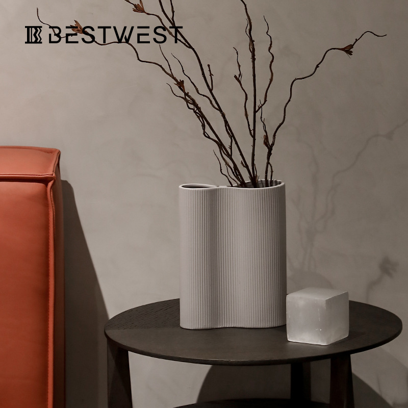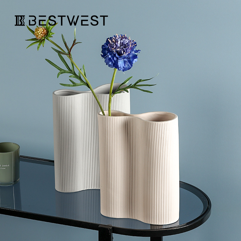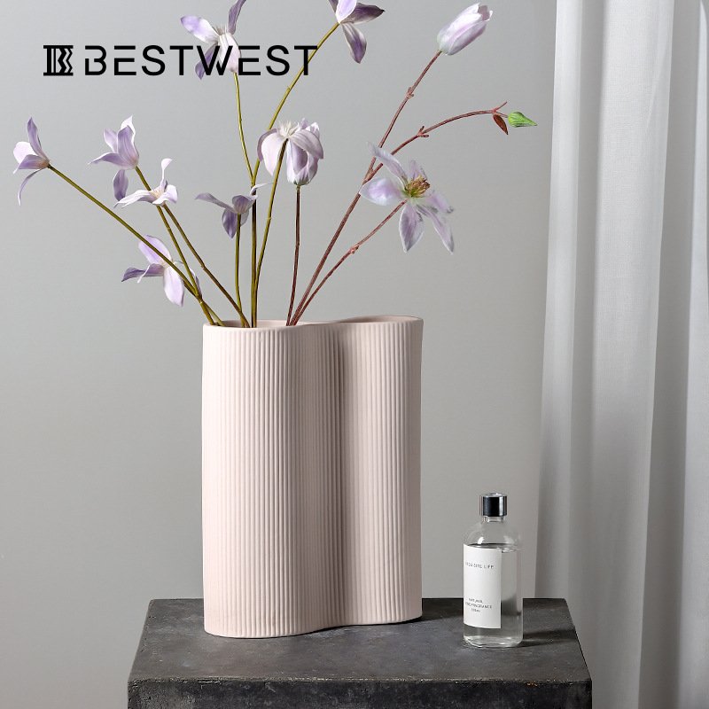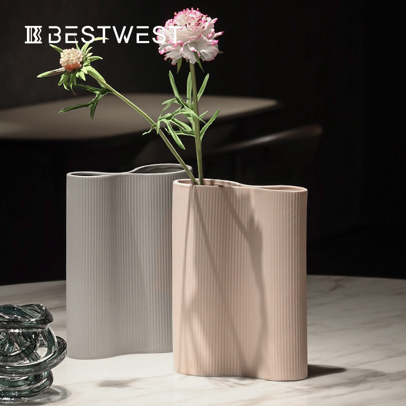 Best West Pink Striped Ceramic Vase Ornaments Home Entrance Soft Decoration Desktop Decoration Flower Vessel