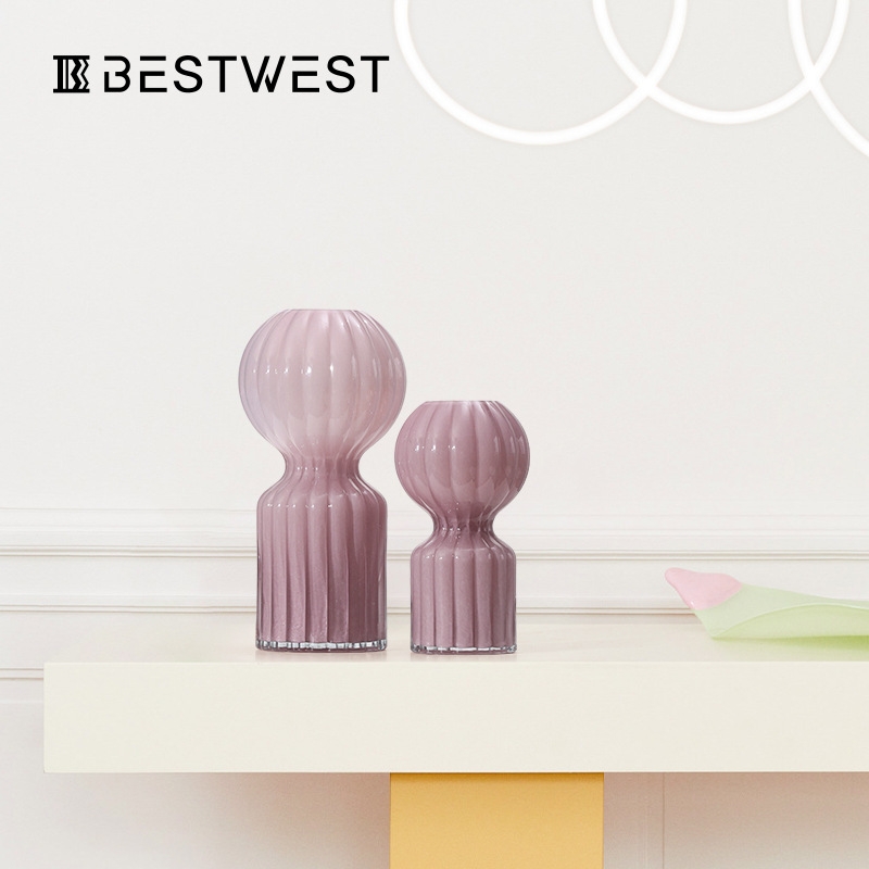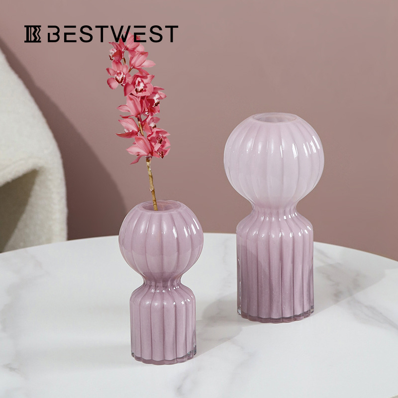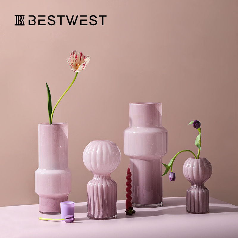 Best West Light Peach Porcelain Powder Irregular Glass Vase Ornaments Simple Home Entrance Living Room Flower Ware