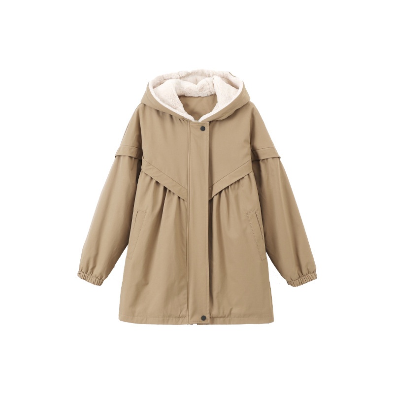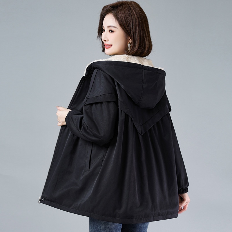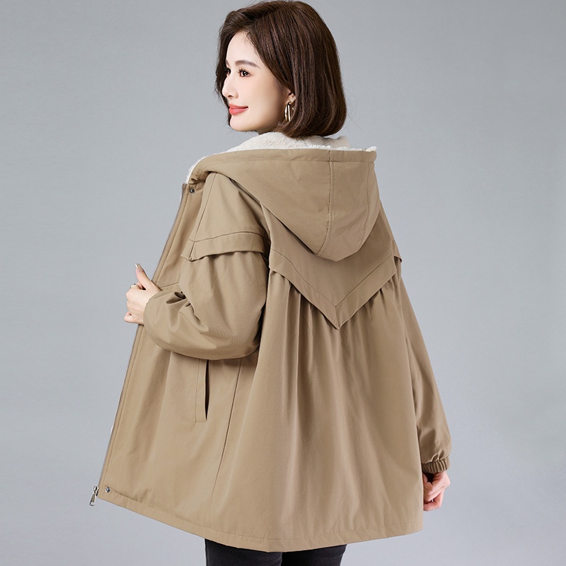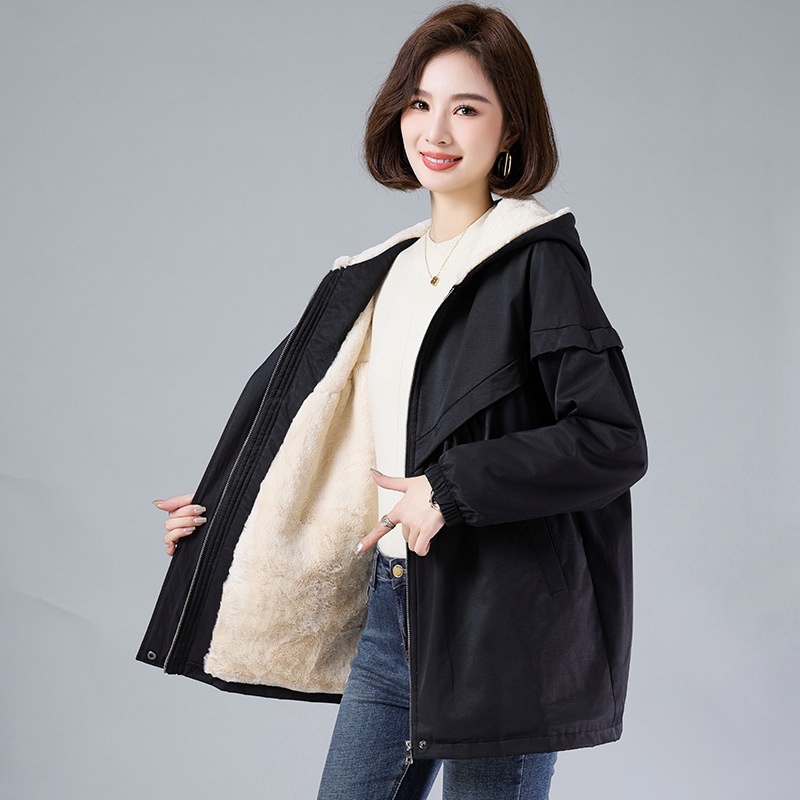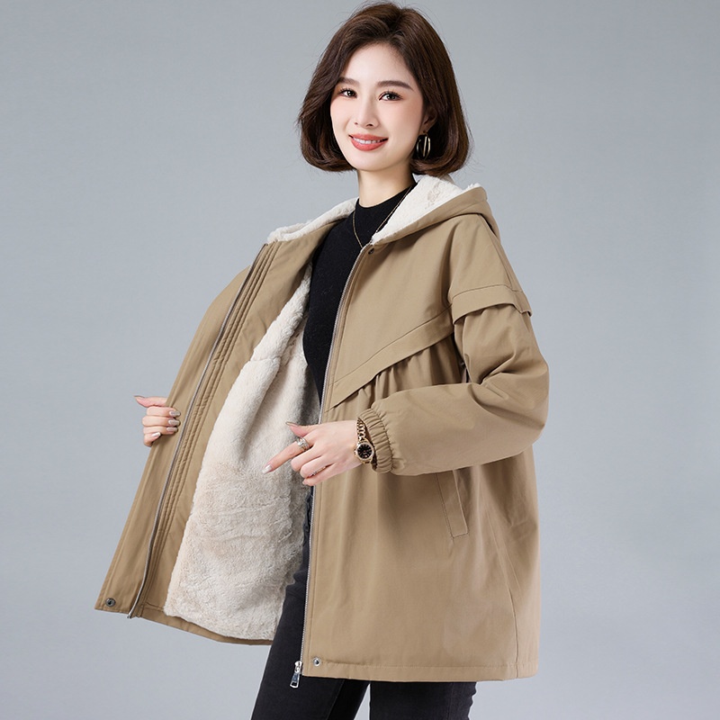 Thick Velvet And Warm Mid-length Windbreaker Jacket Plus Fat Plus Size Middle-aged And Elderly Women's Winter One-piece Drop Shipping 7034