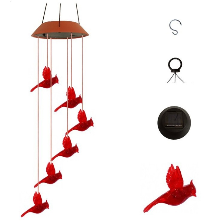 L E D Red Bird Butterfly Outdoor Decorative Atmosphere Light Solar Wind Chime Light