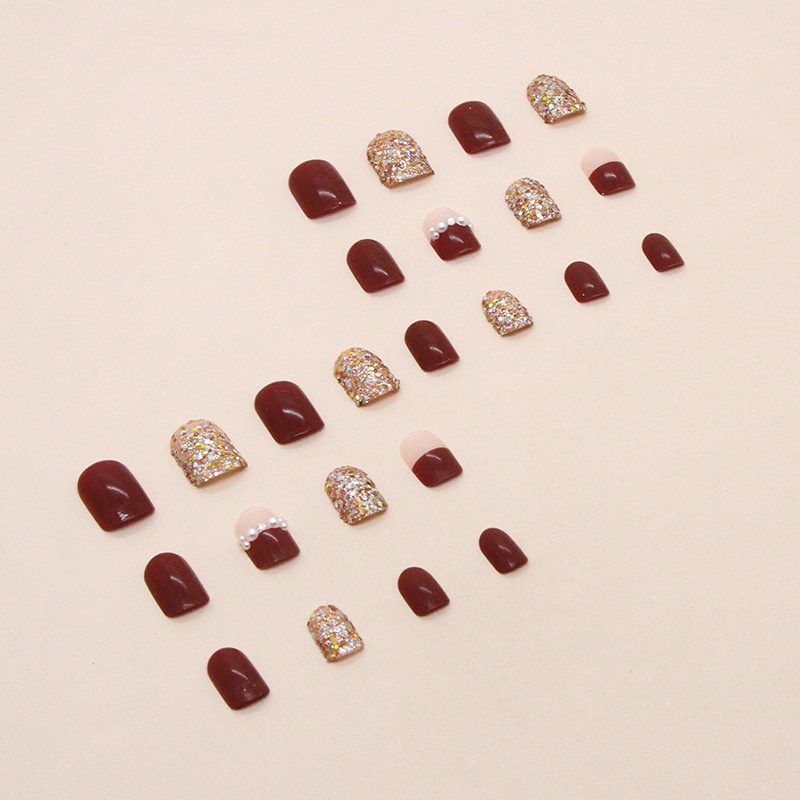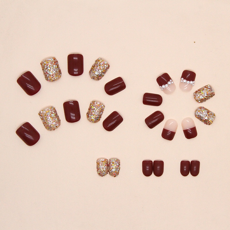 Burgundy Sparkling Fragments, Wearable Nails, Festive Atmosphere, Year's Style Nail Art, Bridal Style Fake Nails Nails
