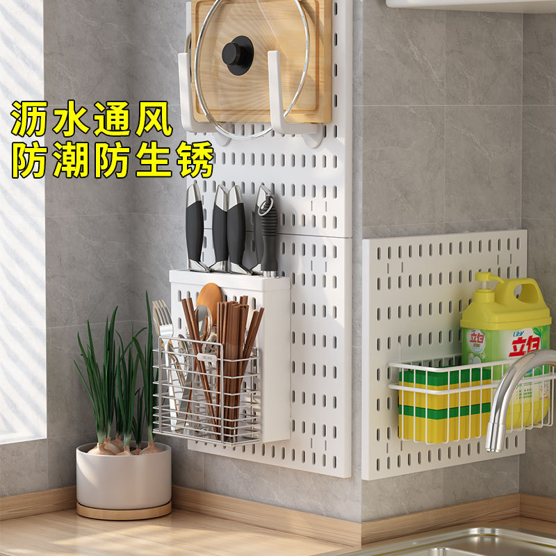 Perforated Board Storage Rack Without Punching Kitchen Knife Holder Chopstick Cage Household Multi-functional Anti-drainage And Anti-rust Wall-mounted Female
