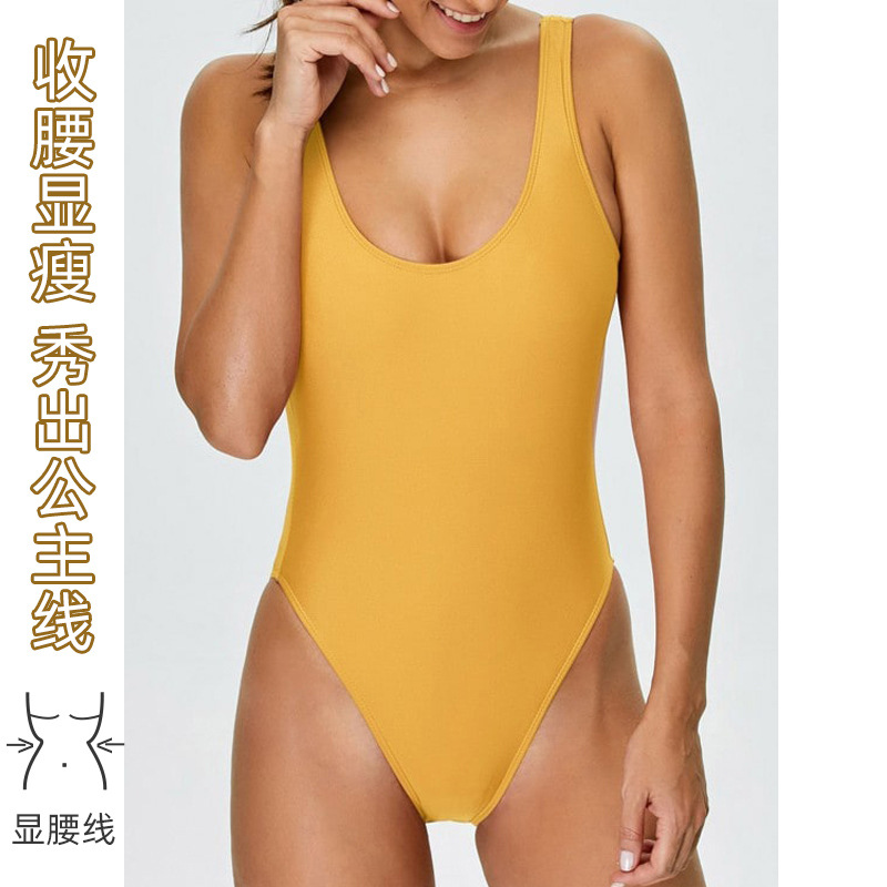 One-piece Swimsuit For Women, Solid Color, Sexy Triangle, Slimming, Belly-covering, European-style Hot Spring Gathering, Small Fragrance Style Swimsuit
