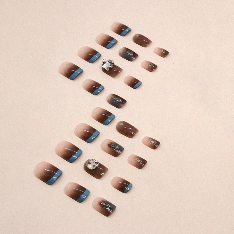 爆闪钻石法式琥珀色晕染少女风时尚穿戴甲成品美甲片