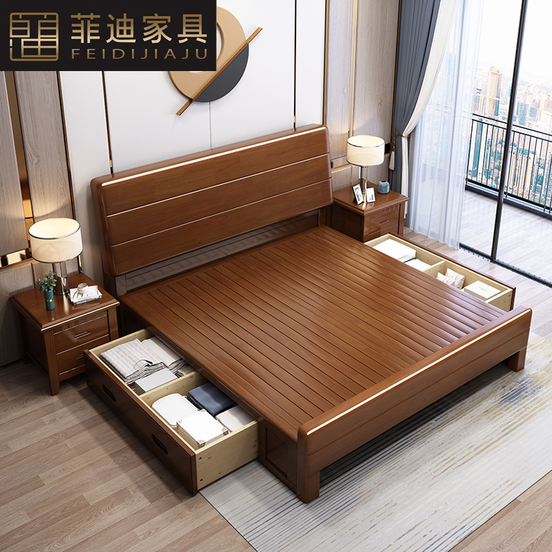 Chinese Solid Wood Bed B& B1.5m1.8m Single Double Bed Apartment Rental1m1.2m
