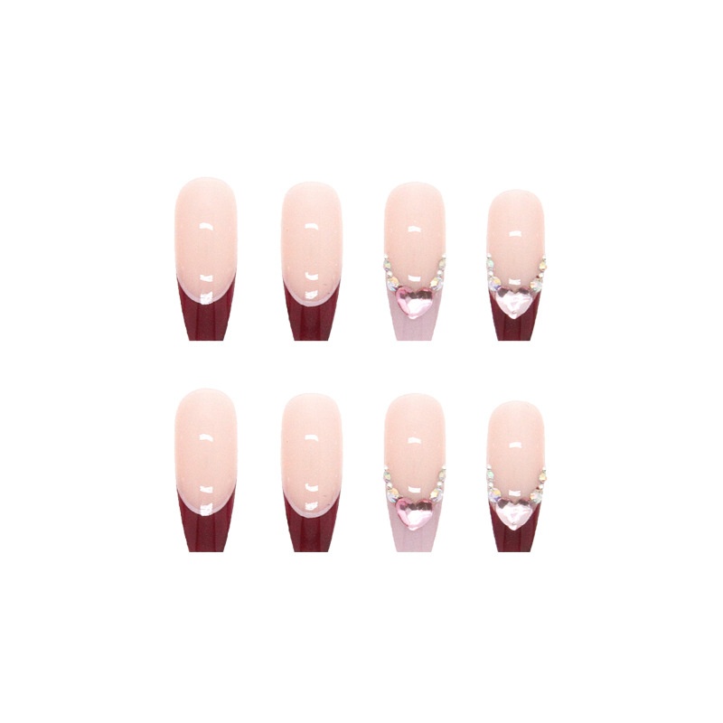 Wearable Nails, Summer Product, Long Diamond Nails, Pink And Transparent, Love Drops, Maroon Red French Edges, Finished Products Can Bed