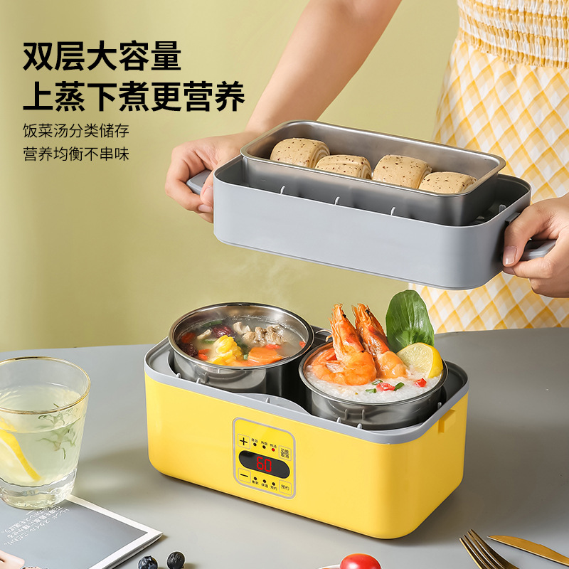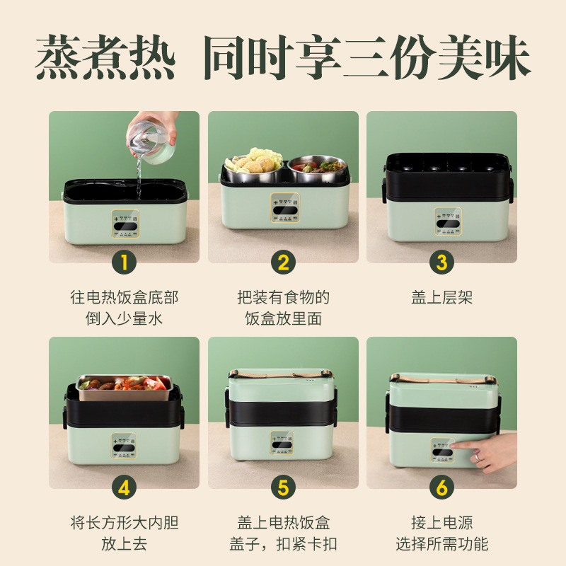 Heated Lunch Box, Electric Heated Lunch Box, Student Dormitory304 Stainless Steel Multi-functional Hot Rice Cooking Lunch Box Plug-in