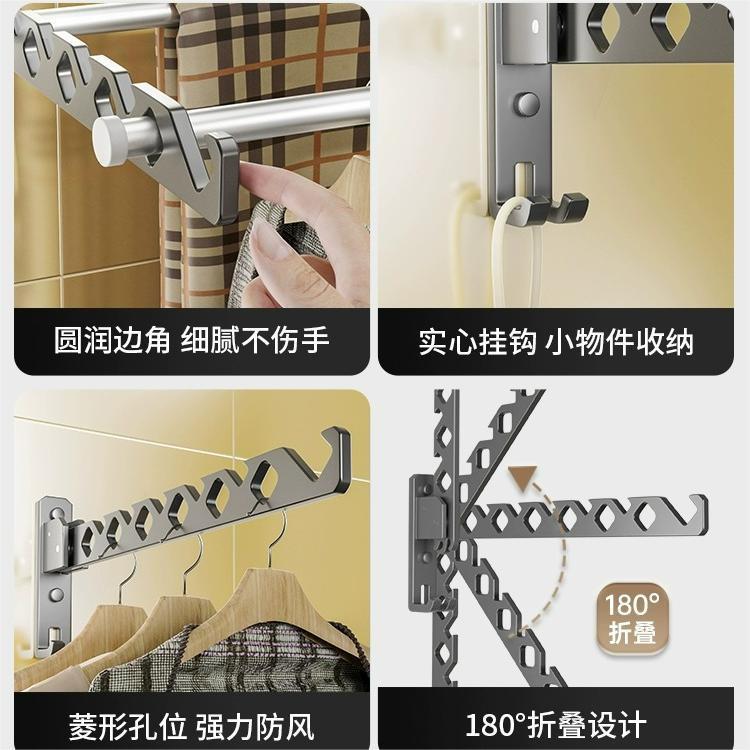 Folding Clothes Drying Rack, Wall Hanging, No Punching, Bathroom Balcony Clothes Drying, Indoor Clothes Drying Rod, Bathroom Invisible Clothes Rack