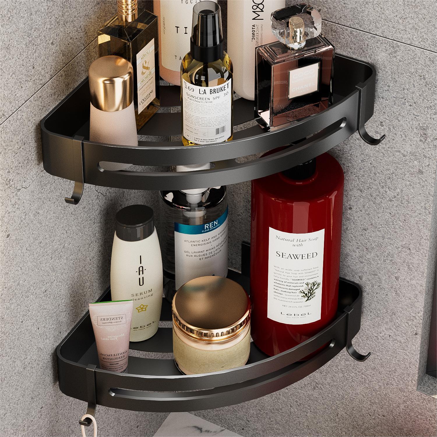 Shower Room Black Storage Rack Bathroom Punch-free Bathroom Triangle Basket Wall Hanging Shampoo Shower Gel Shelf