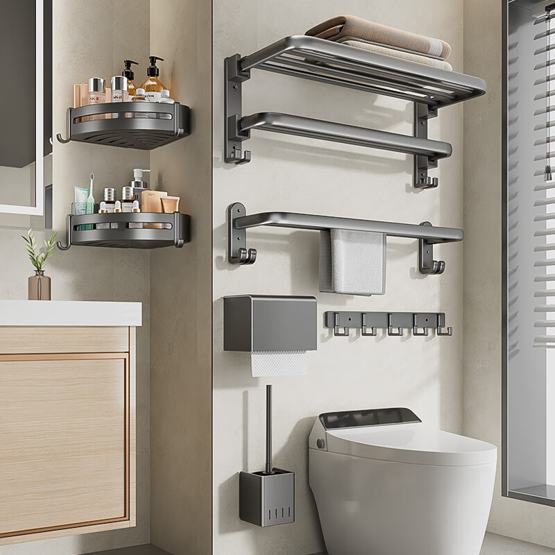 Towel Rack Bathroom Punch-free Bathroom Rack Wall-mounted Toilet Space Aluminum Gun Gray Bath Towel Rack