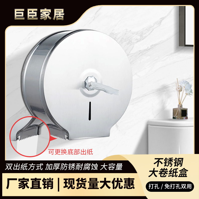 Bathroom Stainless Steel Large Roll Paper Box Center-drawing Large Roll Paper Box Wall-mounted Toilet Paper Box Commercial Foreign Trade Exclusive