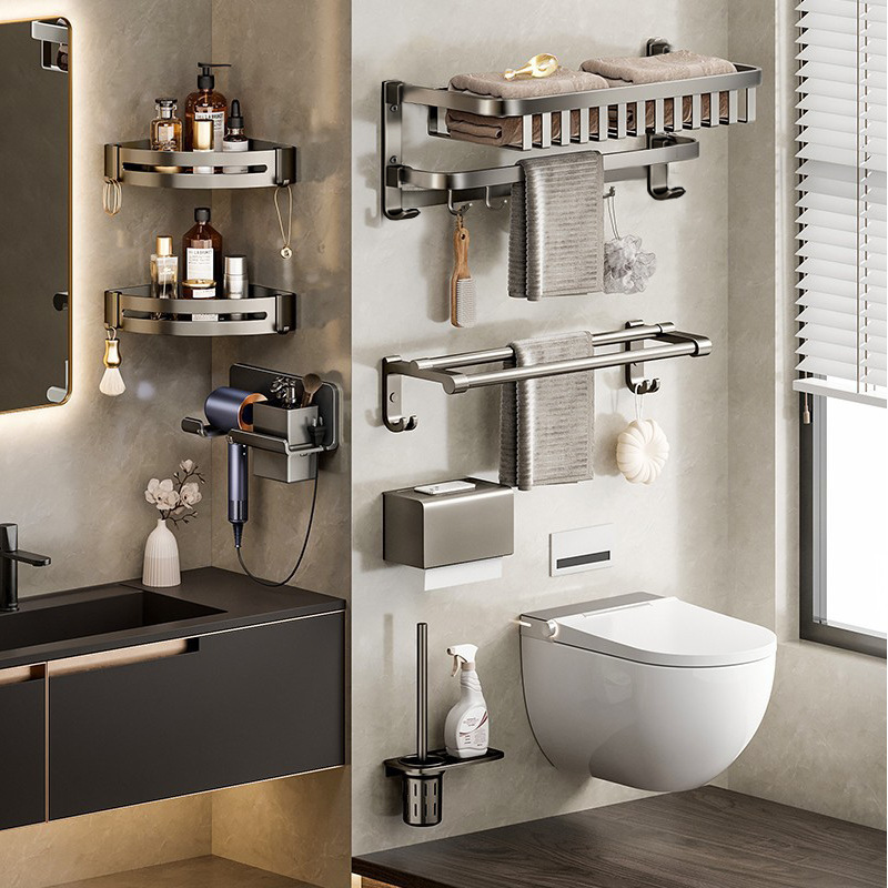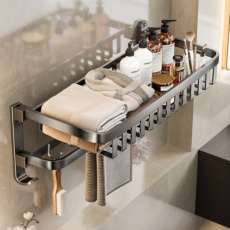 Gun Gray Towel Rack No Punching Bathroom Space Aluminum Toilet Towel Rack Foldable Bathroom Storage Rack Wall Hanging