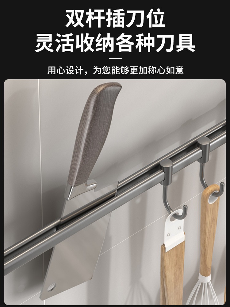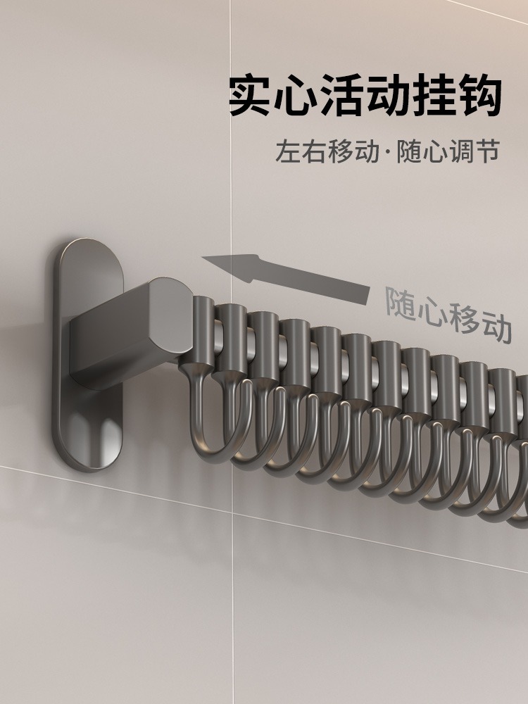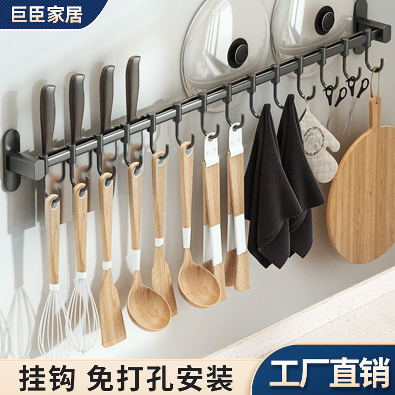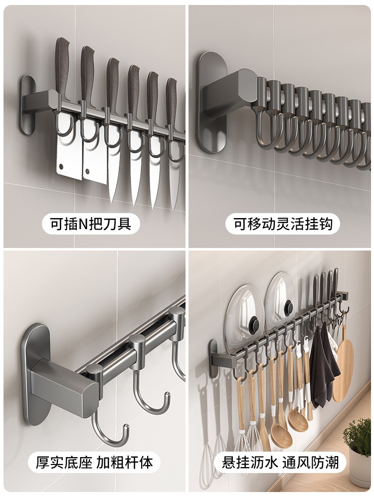 Kitchen Hooks, No Punching, Space Aluminum Wall-mounted Kitchen Utensil Storage Rack, Kitchen And Bathroom Movable Pendants Row Hook Rack