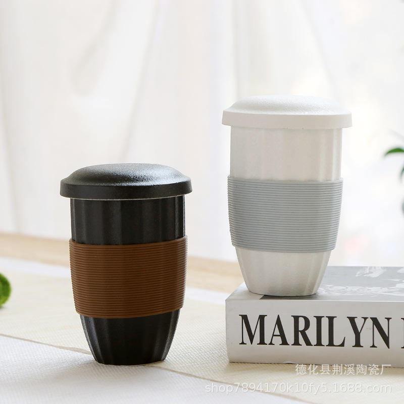 Ceramic Mug Tea Cup Japanese Breakfast Cup With Lid Creative Ceramic Tea Set Office Cup Tea Separation Gift