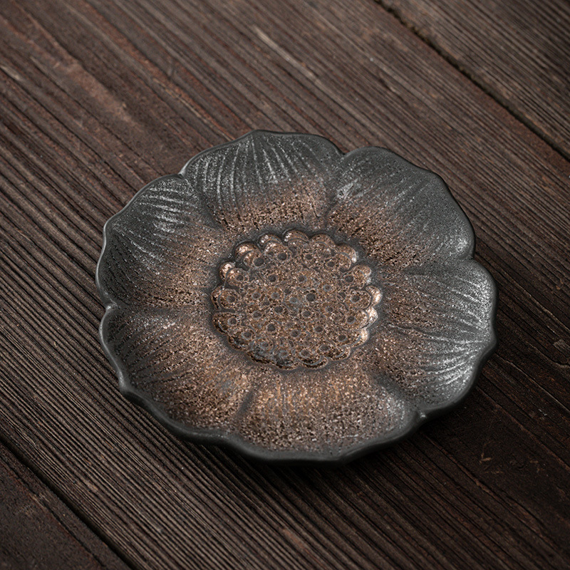 Lotus Coaster Japanese Style Gilt Iron Glaze Retro Ceramic Tea Coaster Coaster Saucer Tea Ceremony Accessories