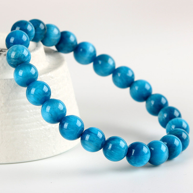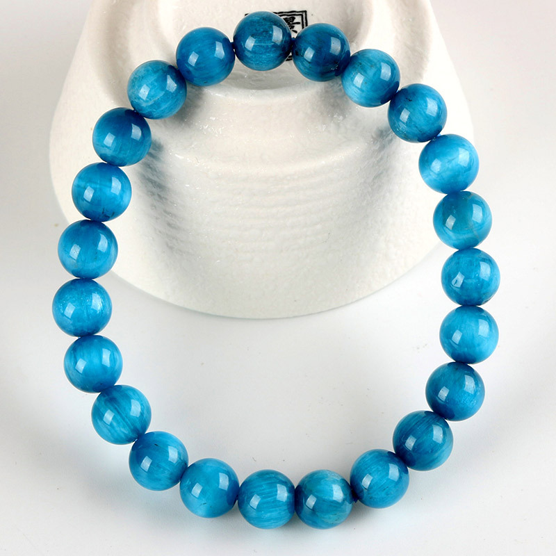 Natural Blue Phosphorus Bracelet Round Beads Blue Phosphorite Bracelet Jewelry With Cat Eye Effect Blue Phosphorus Jewelry