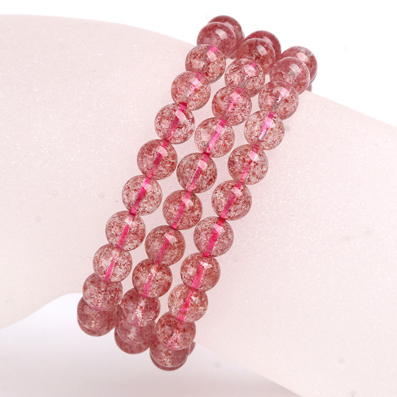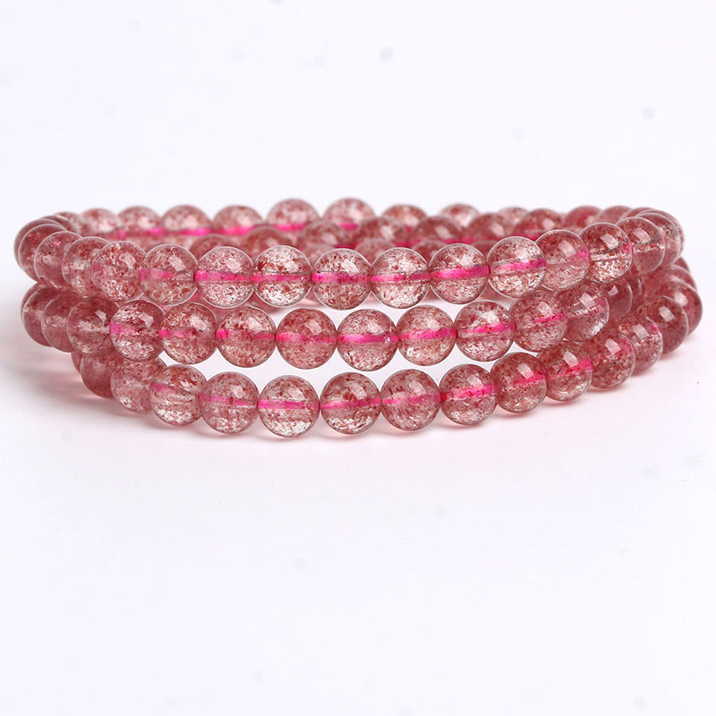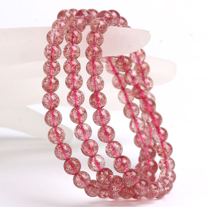 Natural Strawberry Crystal Three-circle Bracelet With Peach Blossom Multi-circle Beads, Strawberry Crystal Beads, Crystal Jewelry