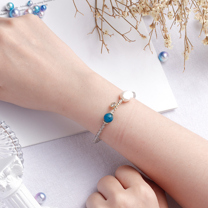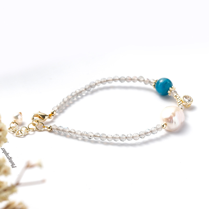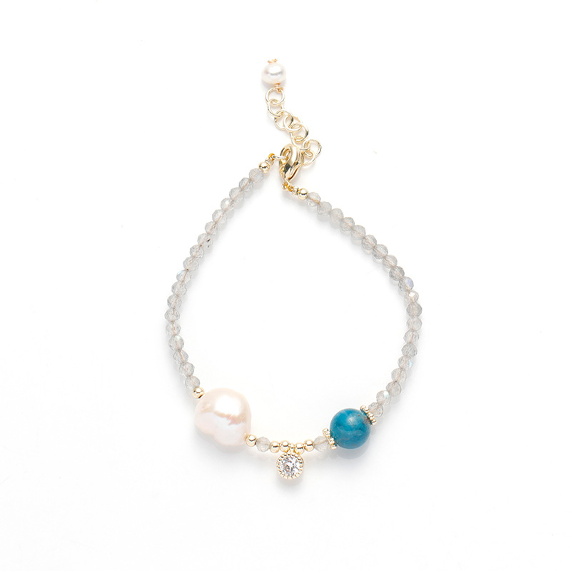 Chinese Valentine's Day Fresh Bestie Moonstone Labradorite Bracelet For Women Freshwater Pearl Simple Adjustable Handmade Design