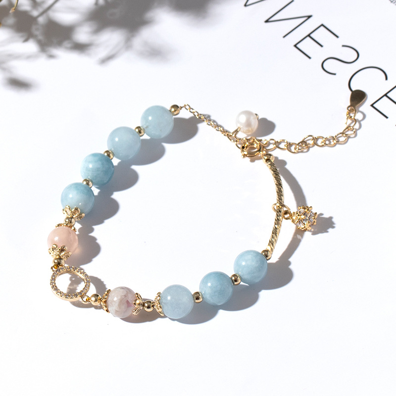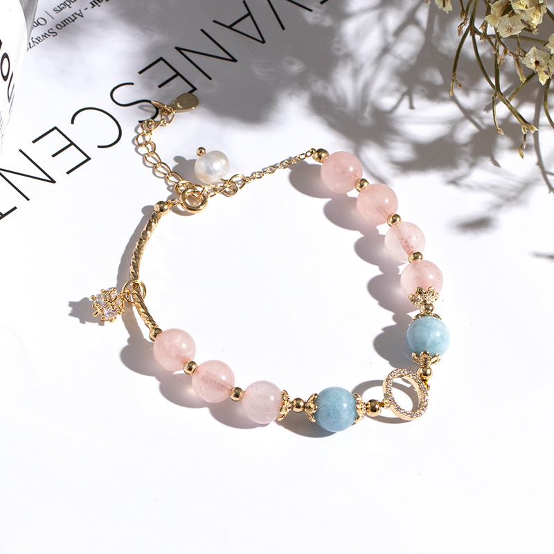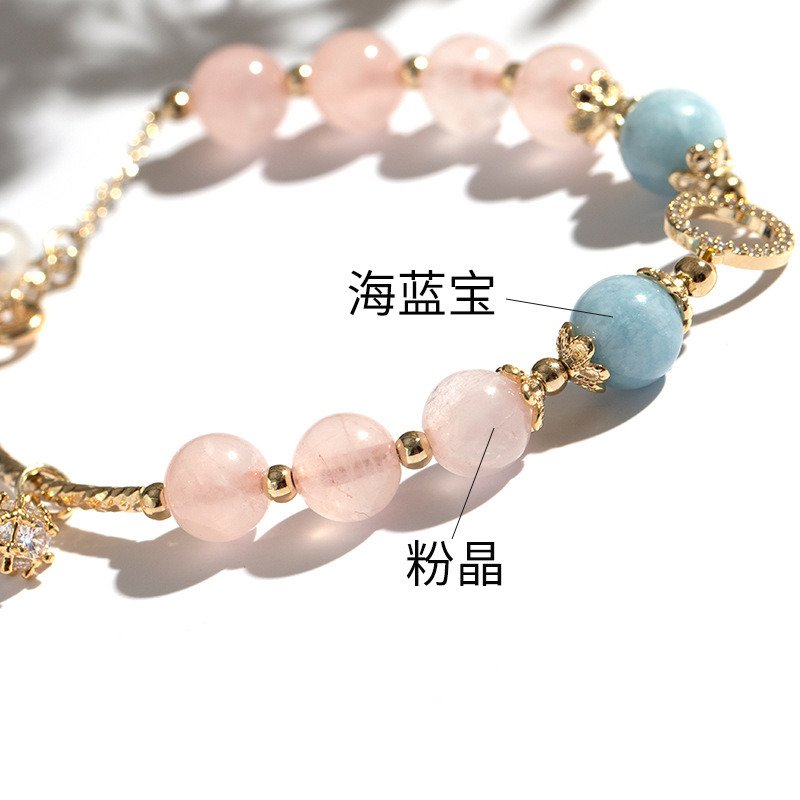 Badu Pink Crystal Aquamarine Bracelet For Women To Attract Peach Blossoms And Transfer To Ensure Safety And Versatile Gift For Student Girlfriends And Girlfriends