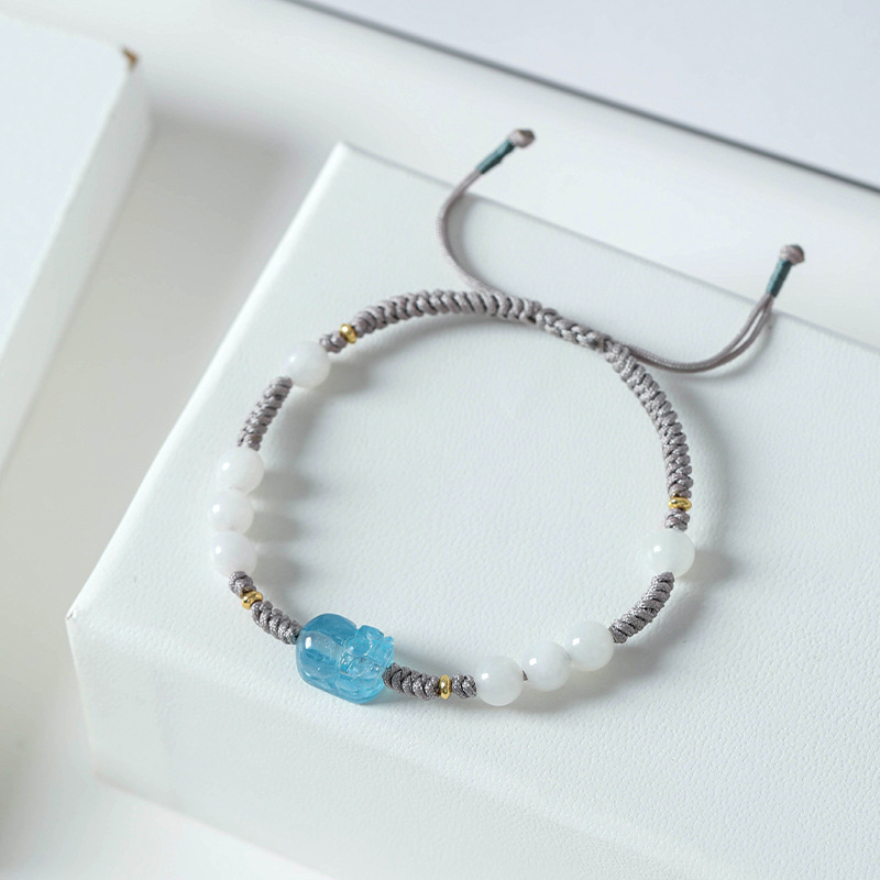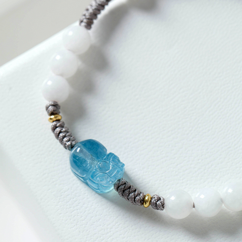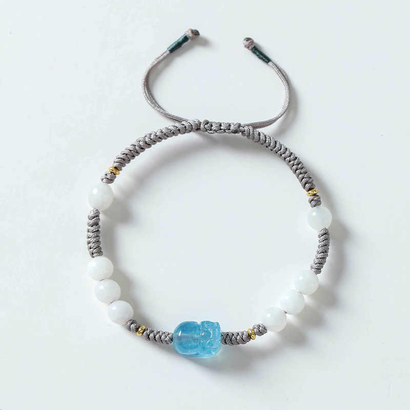 Badu Natural Hetian White Jade Men And Women Couple Bracelet Braided Rope Hand Decoration Aquamarine Pixiu Best Friend Bracelet