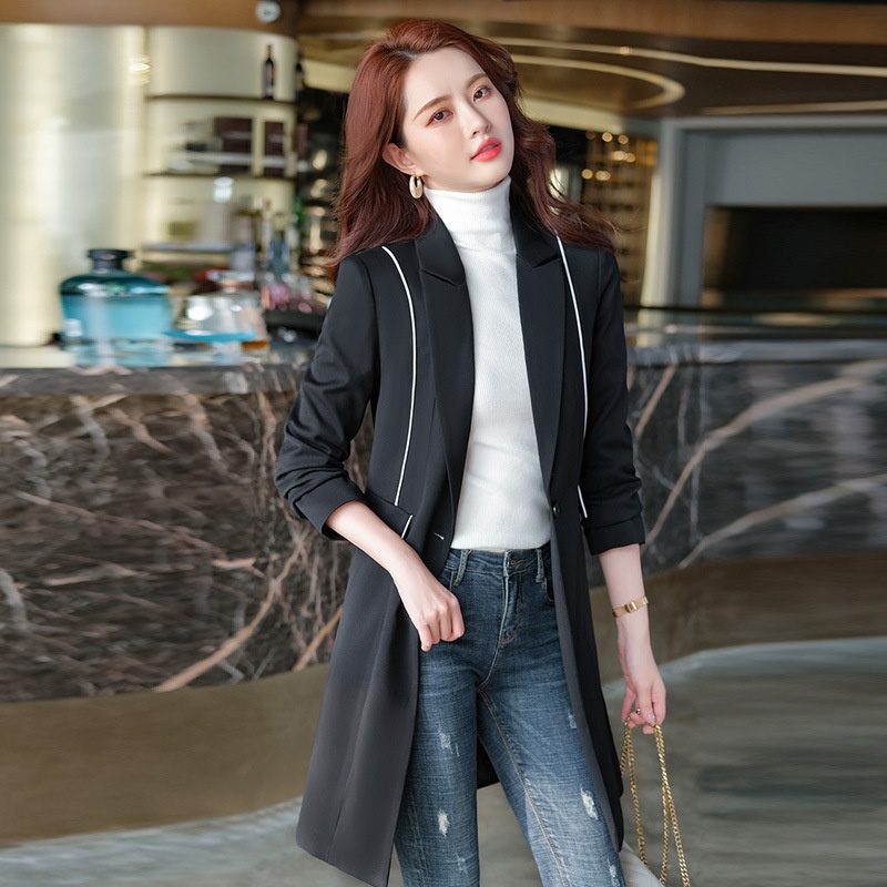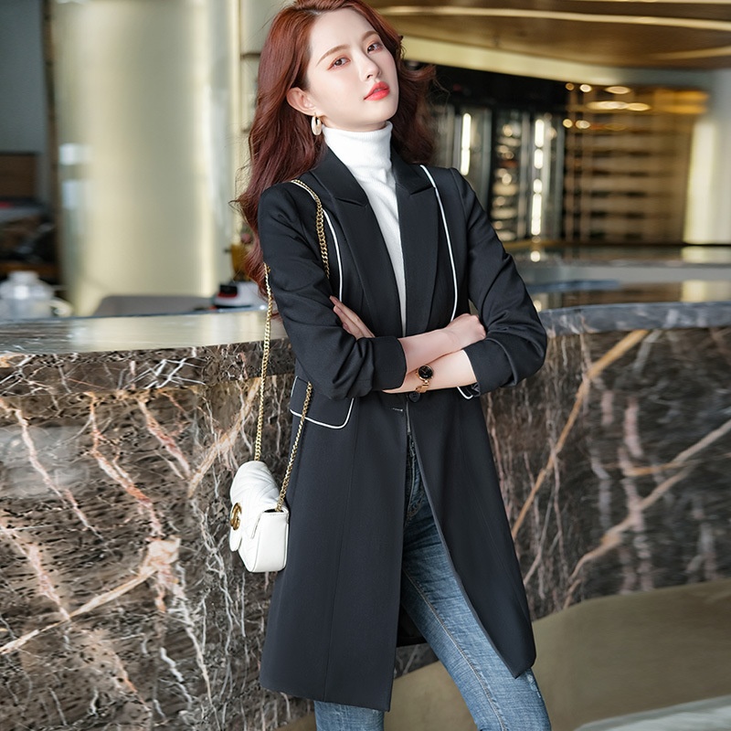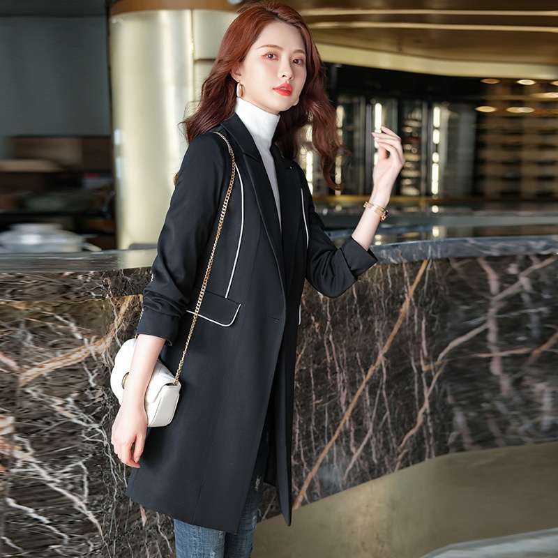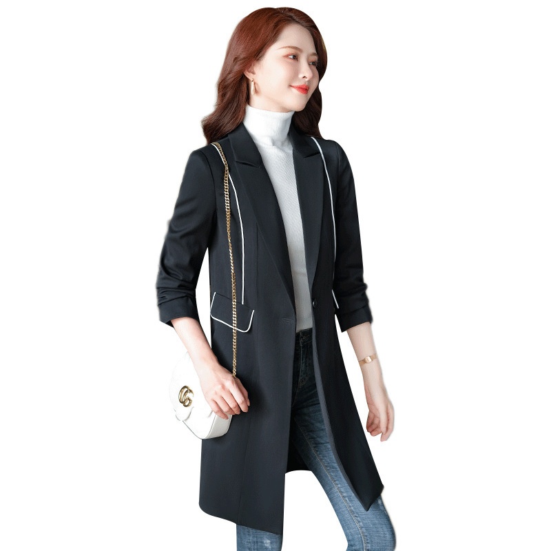 Spring And Summer Casual Korean Style Black Fashionable Waist Slimming Temperament Commuting Mid- Length Windbreaker Jacket For Women