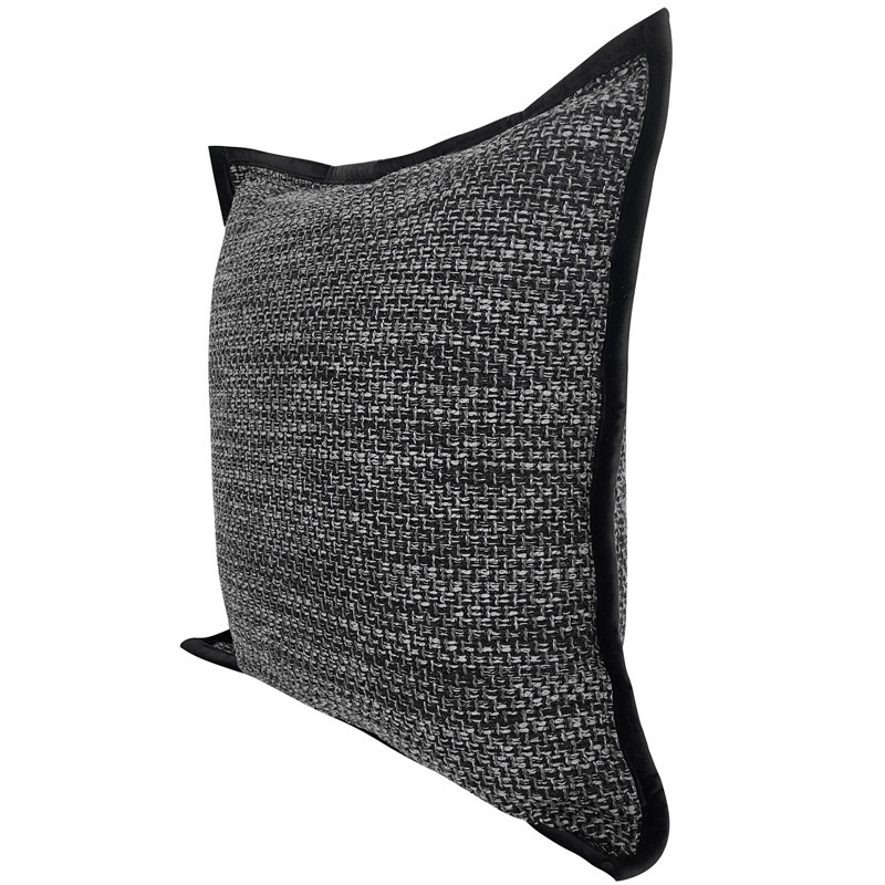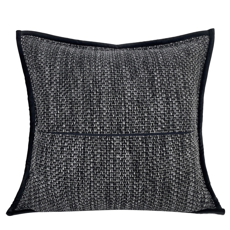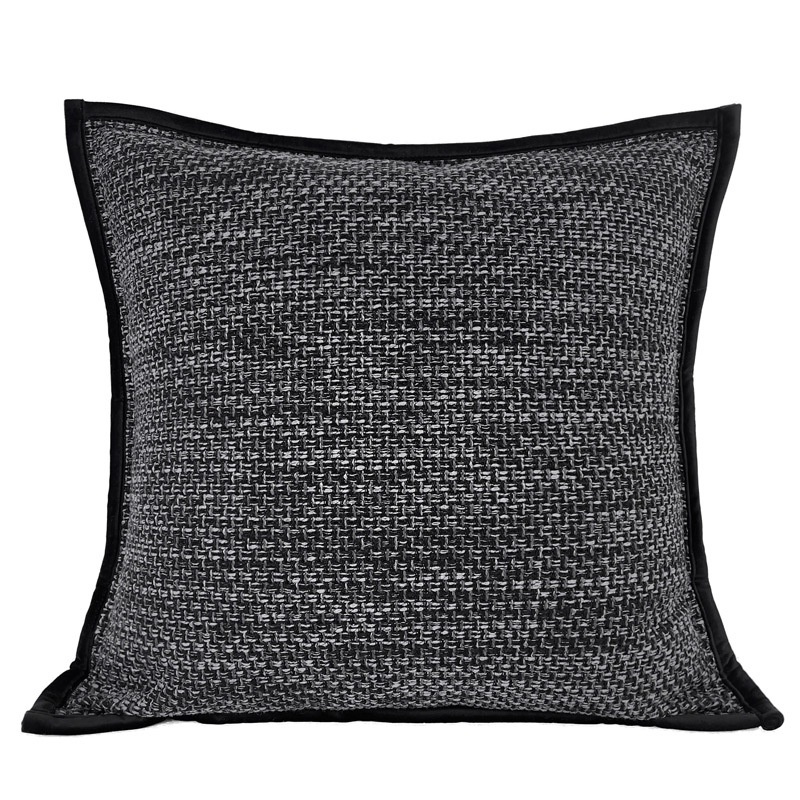 Black And Gray Cotton And Linen Textured Edging Pillowcase Modern Simple Light Luxury Living Room Sofa Cushion Cover Model Room Soft Furnishing