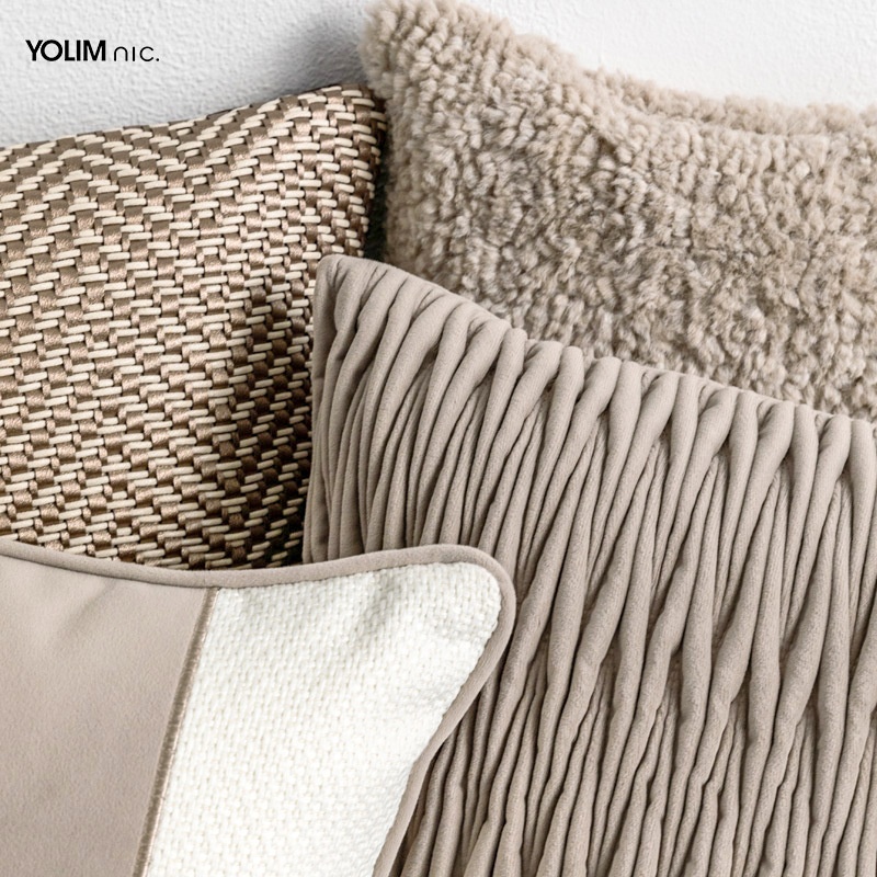 Coffee Color Modern Simple Light Luxury High-end Sofa Pillow Three-dimensional Pleated Cotton And Linen Texture Milk Coffee Color Cushion Cover