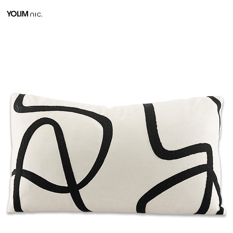 Suede Black And White Towel Embroidery Abstract Lines Pillowcase Modern Simple Nordic Style Sofa Waist Pillow