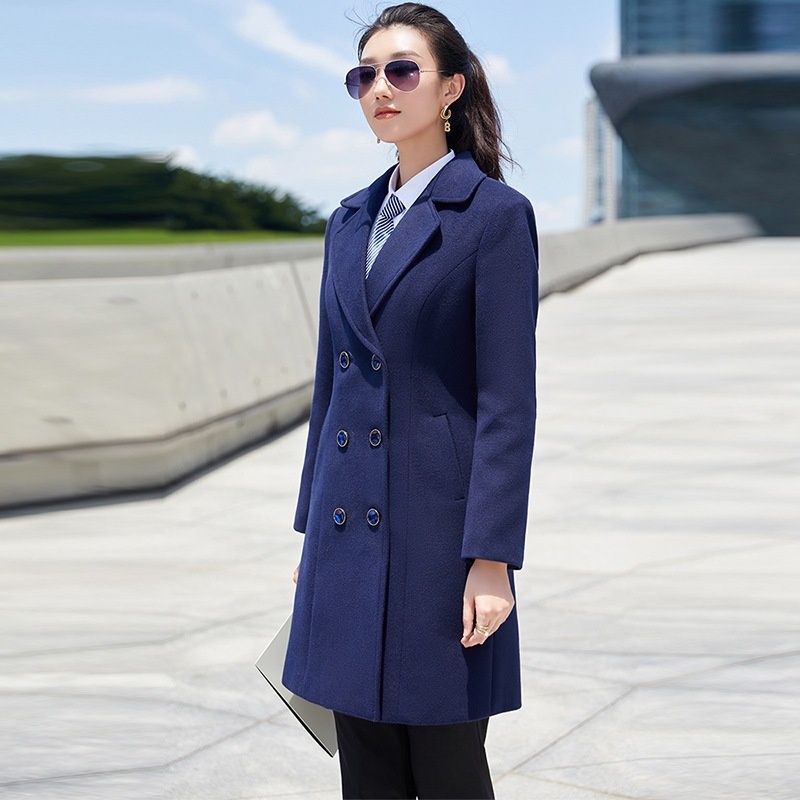 Blue Coat Women's Mid-length Temperament Windbreaker Women's Suit Coat Temperament O L Professional Women Autumn And Winter