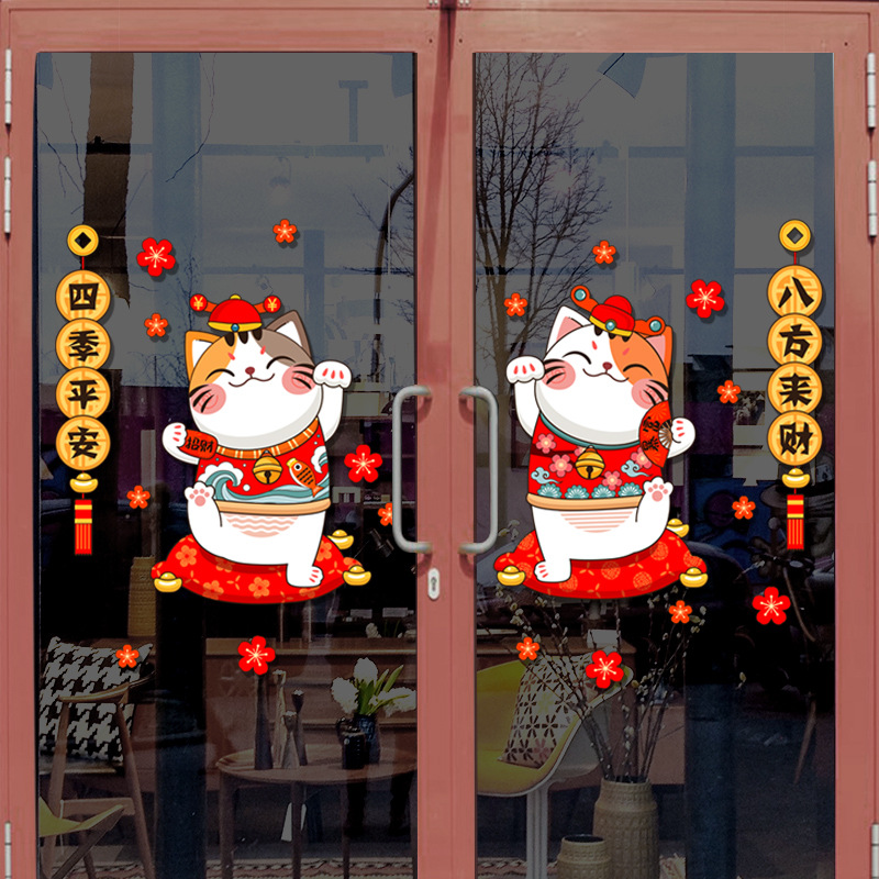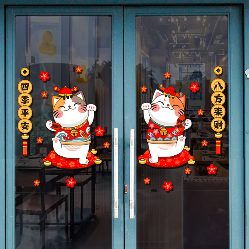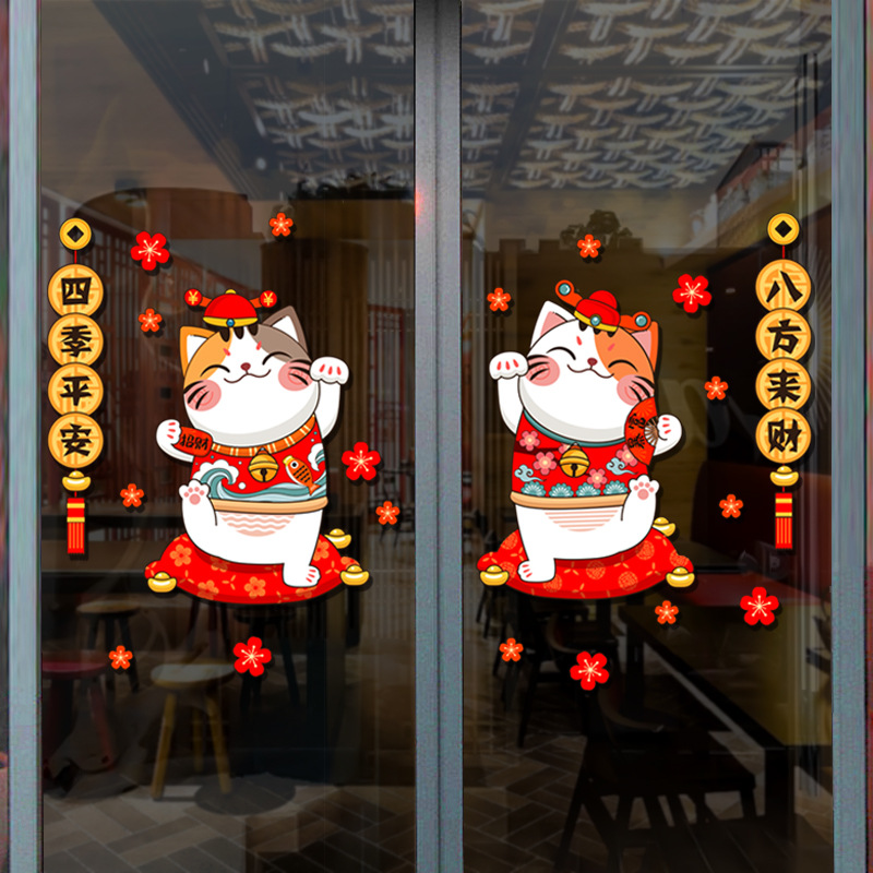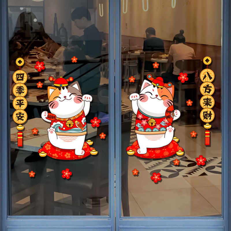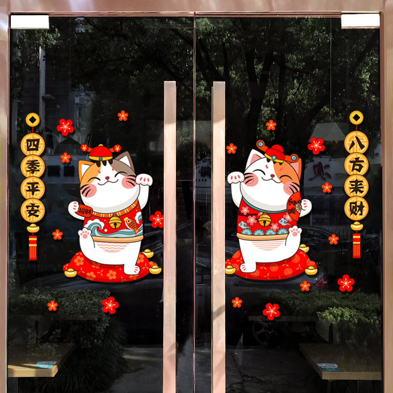 Kitchen Glass Door Sticker Sliding Door Store Opening Sticker Wall Sticker Lucky Cat Window Sticker Year's Day