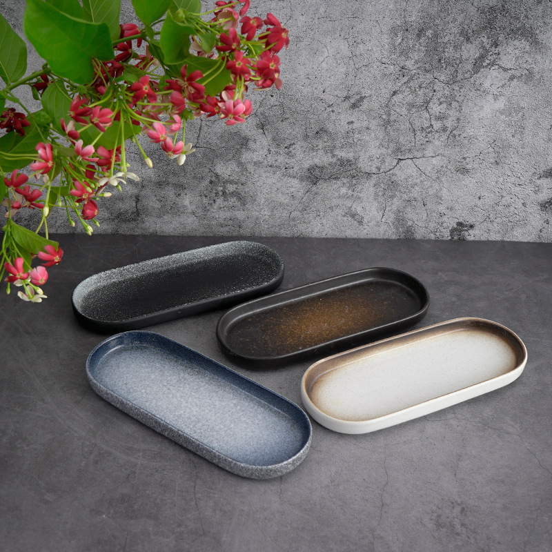 Creative Sushi Plate Japanese Tableware Rectangular Oval Plate Ceramic Japanese Plate Household Tableware Fish Plate Flat Plate Dinner Plate