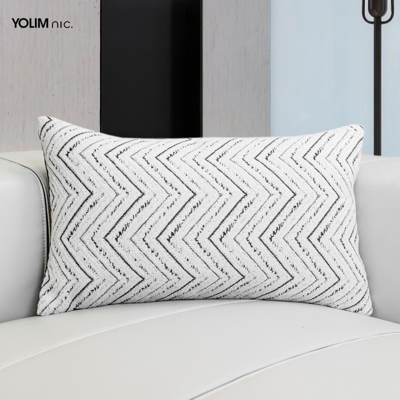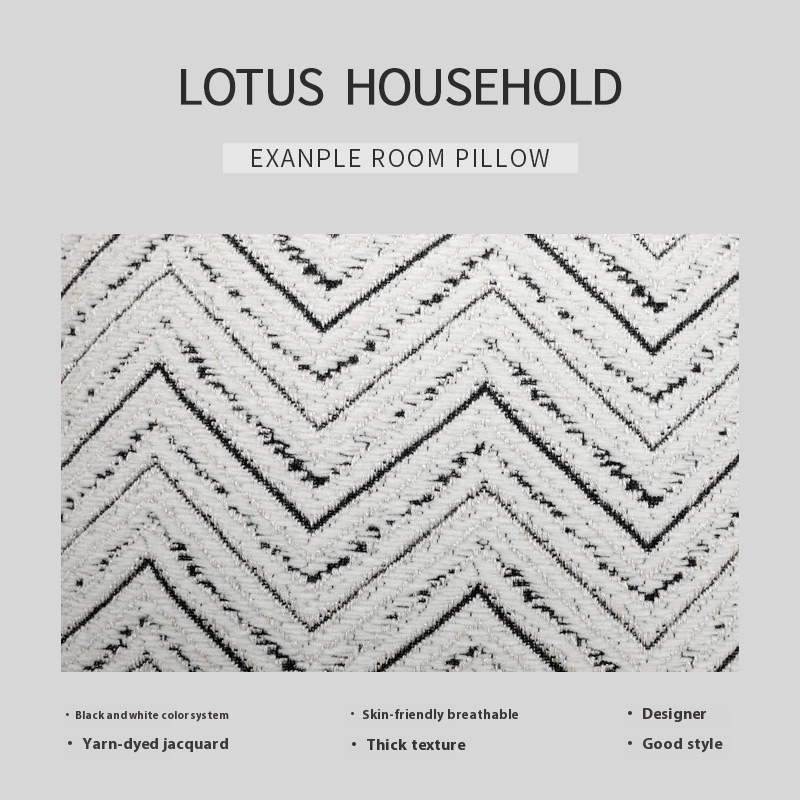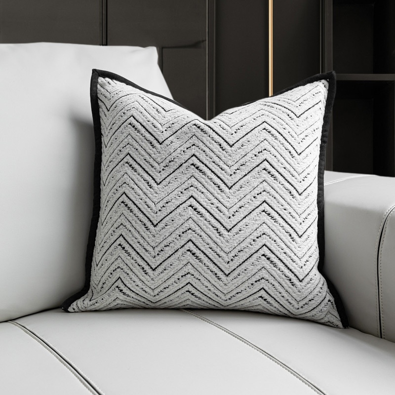 Modern Simple Light Luxury Living Room Sofa Cushions High-grade Black And White Cotton And Linen Jacquard W-patterned Edge Pillowcase