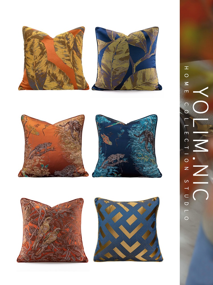 Orange Light Luxury American Chinese Classical European Decorative Pillow Soft Decoration Model Room Designer Cushion Cushion