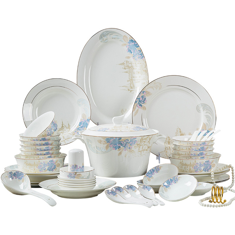 Ceramic Bowl Soup Bowl Plate Dish Plate Small Gift Set Jingdezhen Rice Bowl Fish Plate Simple Bone China Tableware Home