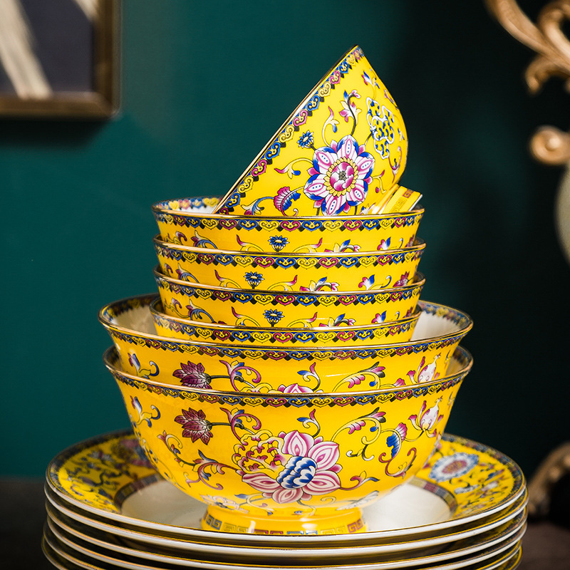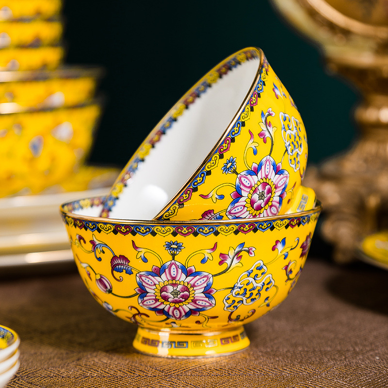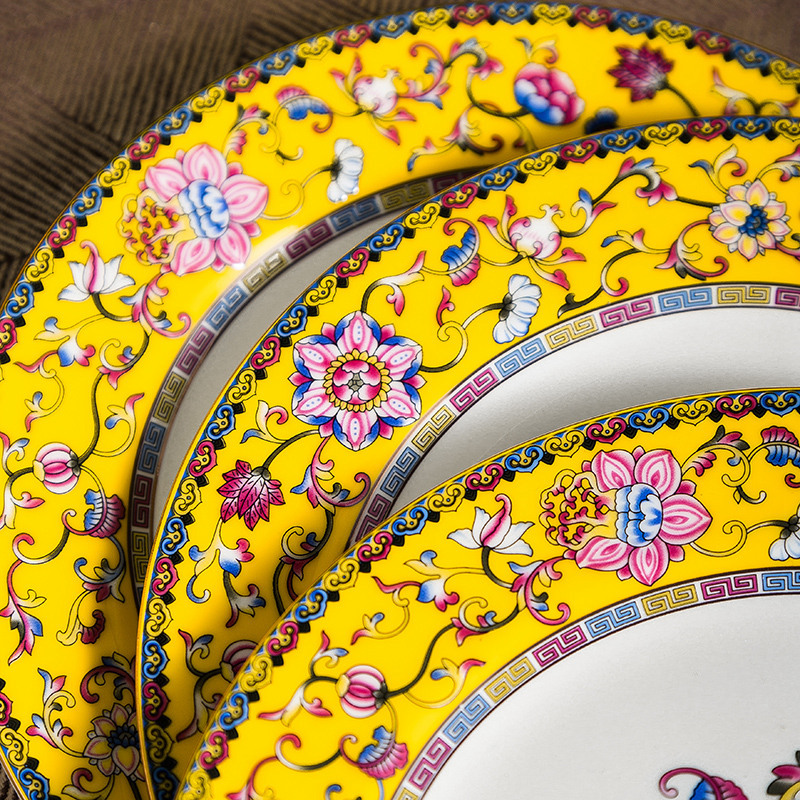 High-end Enamel Color Tableware Set Will Sell Bone China Gifts Jingdezhen Ceramic Dishes Wedding Home Straight Hair
