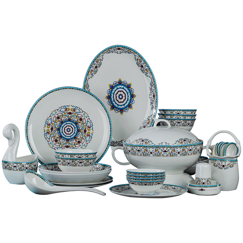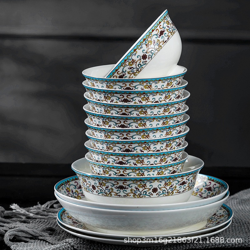 Jingdezhen Ceramic Overglaze Color Tableware Children's Bowls And Chopsticks Household Bowl Sets Spoons Gift Plates