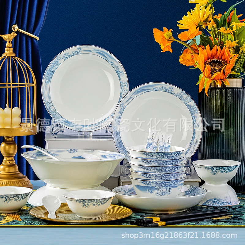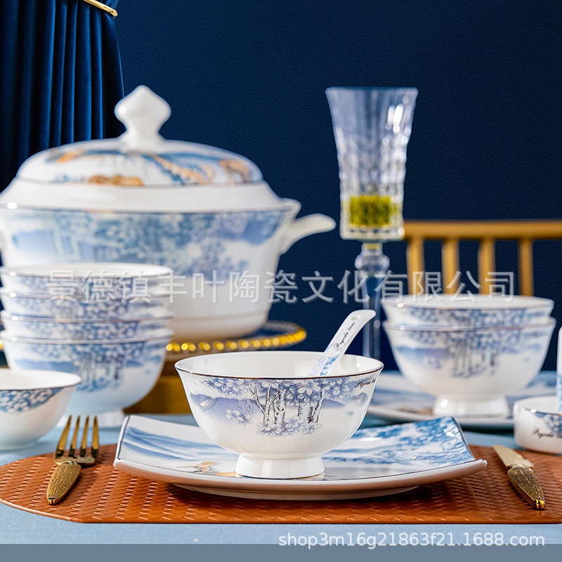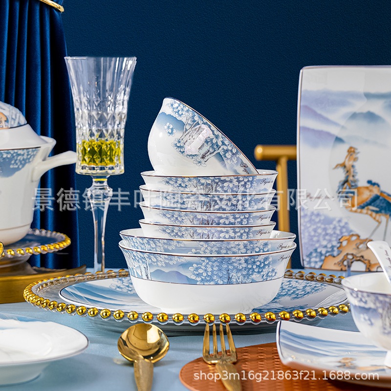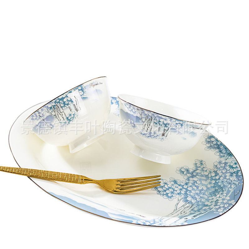 Household European Dishes, Ceramic Tableware Set, Jingdezhen Chinese Bone China Tableware Set, Chinese Gift Set