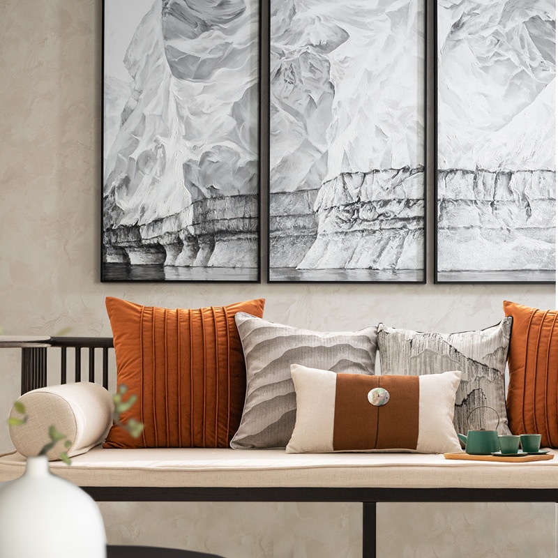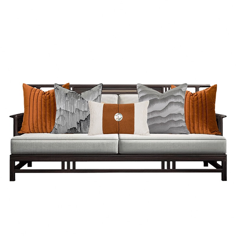 Chinese Style Living Room Sofa Pillow Combination Sales Office Model Room Orange Gray Light Luxury Ink Painting Cushions