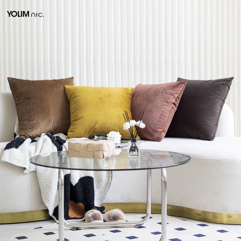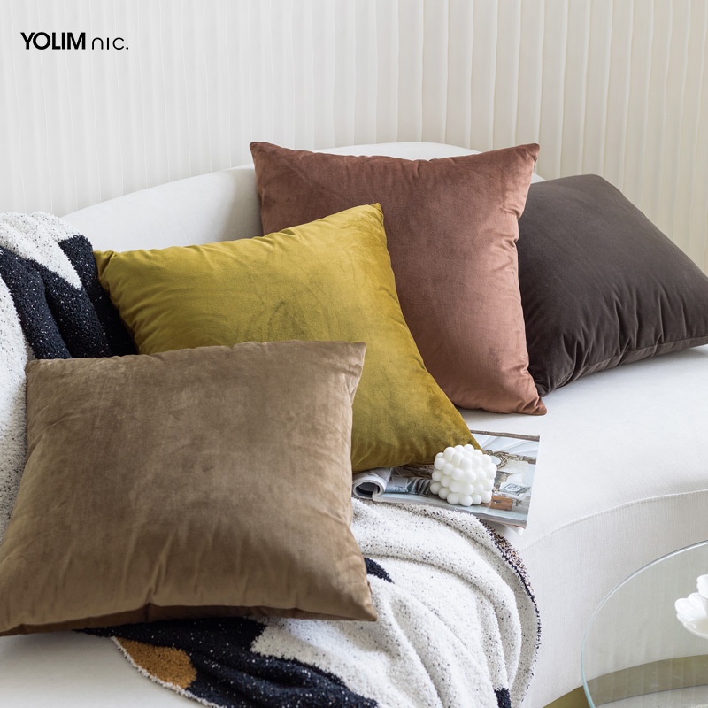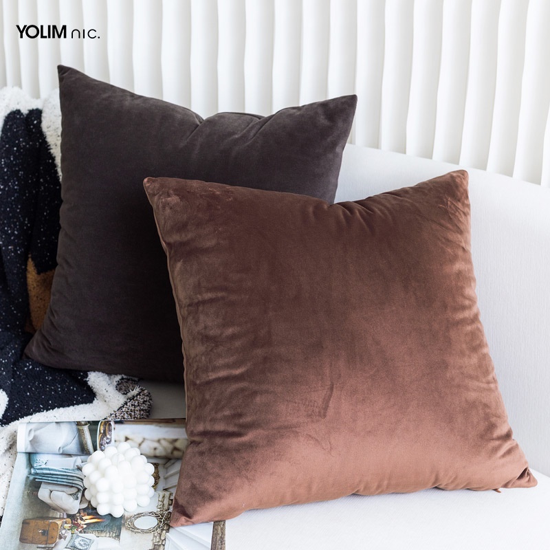 Misty Brown Gold| Modern Simple Chinese Living Room Sofa Pillow Cover Solid Color Velvet Cushion Cover50 X50cm