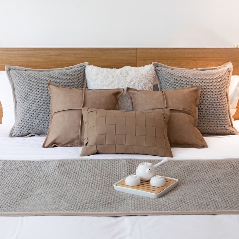 Simple Coffee Color Designer Soft Furnishings Bedding Cushions Bed Flags Bed End Towels With Modern Light Luxury Model Room Bedroom