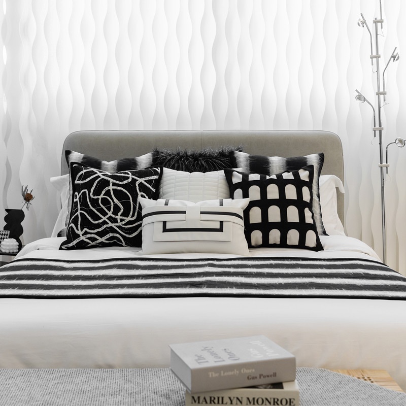 Light Luxury Model Room Bed Flag Pillow Combination Hotel Villa High-end Bed End Towel Sofa Pillow Black Gray Stripes