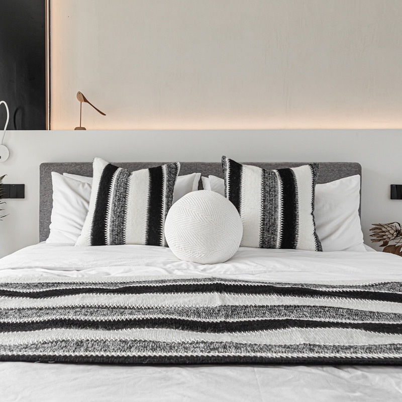 Modern Simple Black And White Striped Bed Flag Bed End Towel Light Luxury Model Room Homestay Bedding Cotton Linen Bedroom Soft Decoration Design