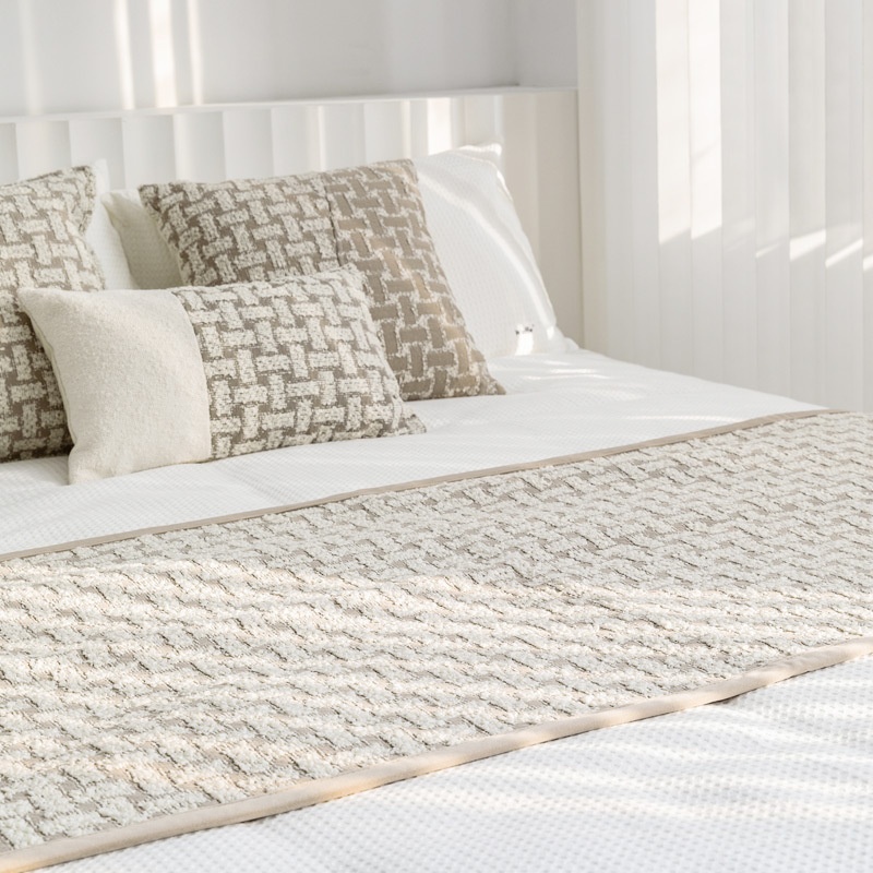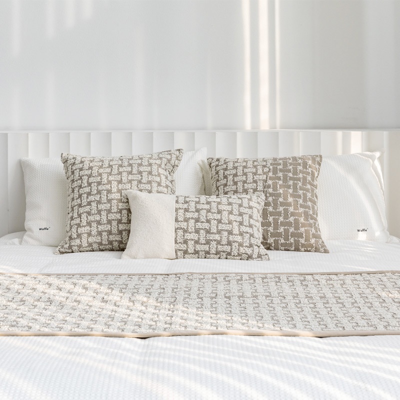 『 Flower Brick』 Modern Light Luxury Model Room Bed Flag Cream Khaki Homestay Soft Furnishing Bed End Towel Bed Pillow Cushion