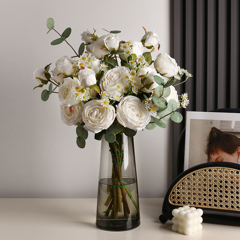 Bei Hanmei Light Luxury Simulation Rose Silk Flower Fake Bouquet Living Room Indoor Home Decoration Flower Decoration Hand Bouquet