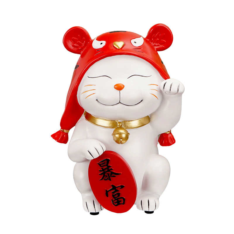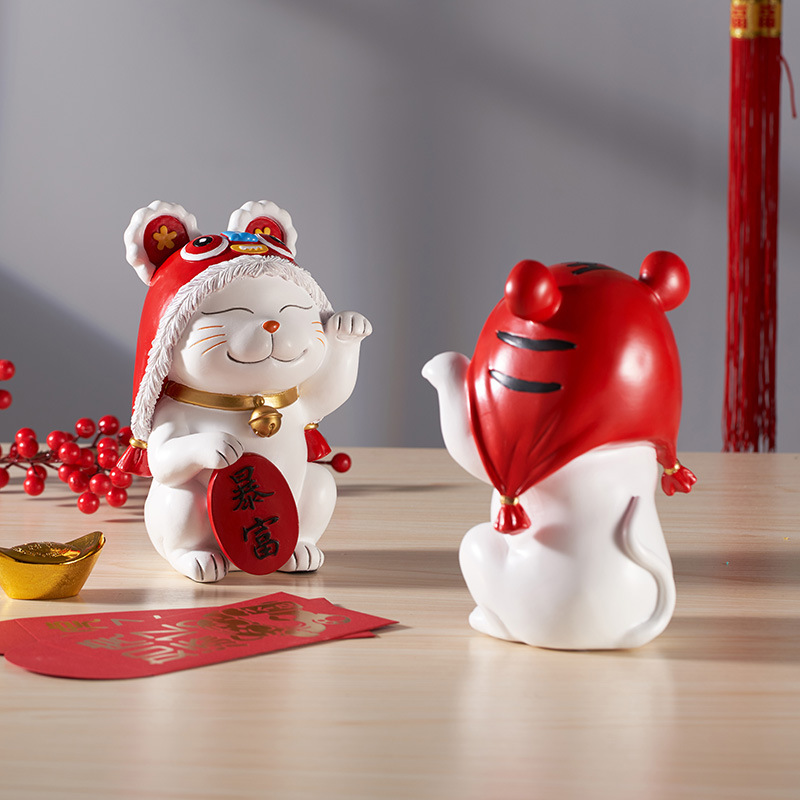 Year's Creative Tiger Head Hat Lucky Cat Ornament Cute Rich Lucky Cat Resin Home Festive Decorative Crafts