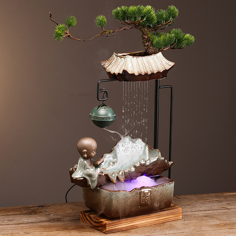 Chinese-style Wealth-drawing Water Ornaments Waterscape Fountain Desktop Living Room Office Front Desk Ceramic Creative Opening Gifts